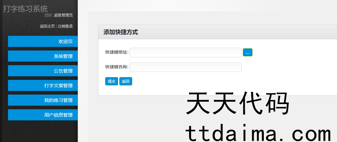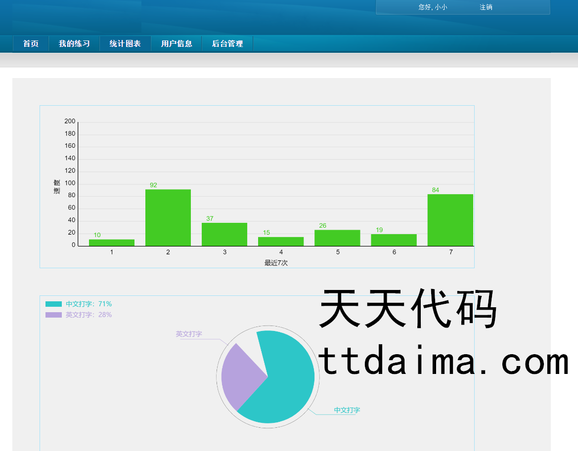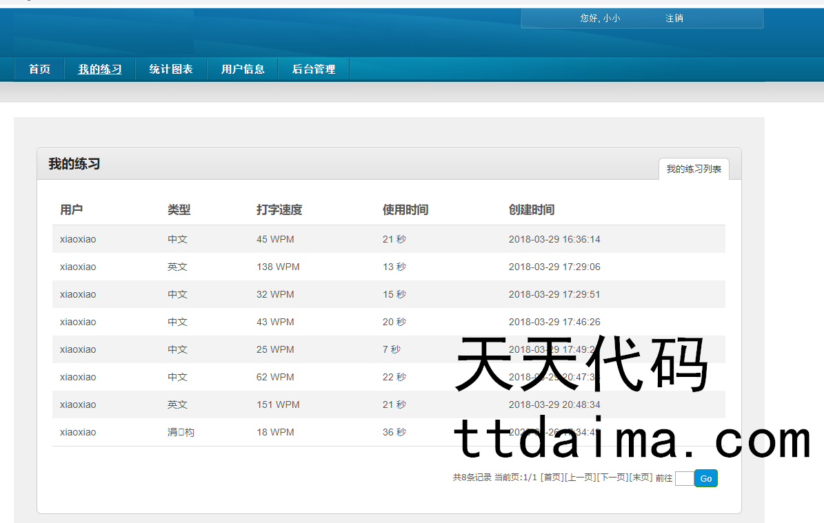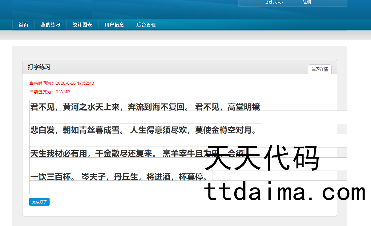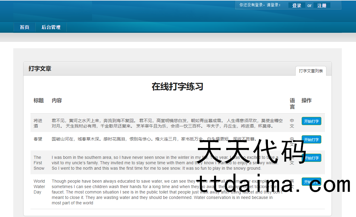 本使用Java开发的SSH框架的打字练习系统由天天代码收集测试整理。