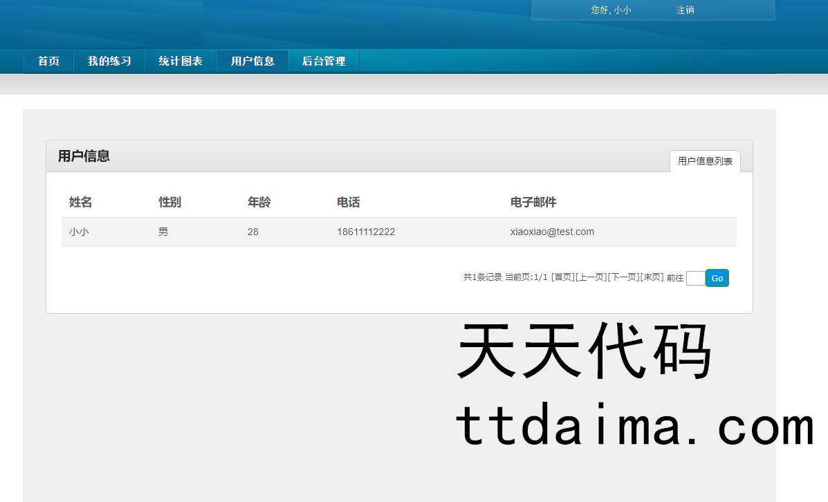实现了如下功能:用户前台可以进行,登陆注册,在线练习打字,并查看练习效果,等功能。管理员后台可以进行,用户管理,打字文章管理,公告管理,等功能。