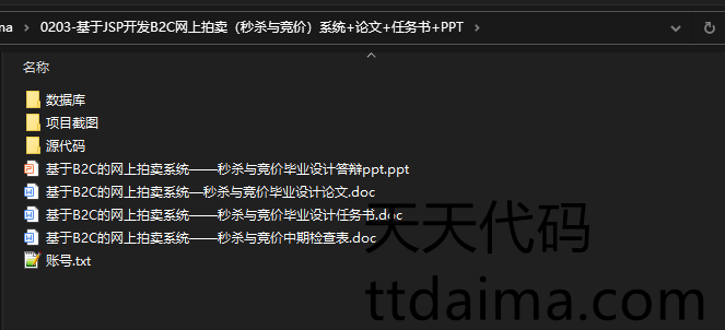 本基于JSP开发B2C网上拍卖(秒杀与竞价)系统由天天代码收集测试整理。