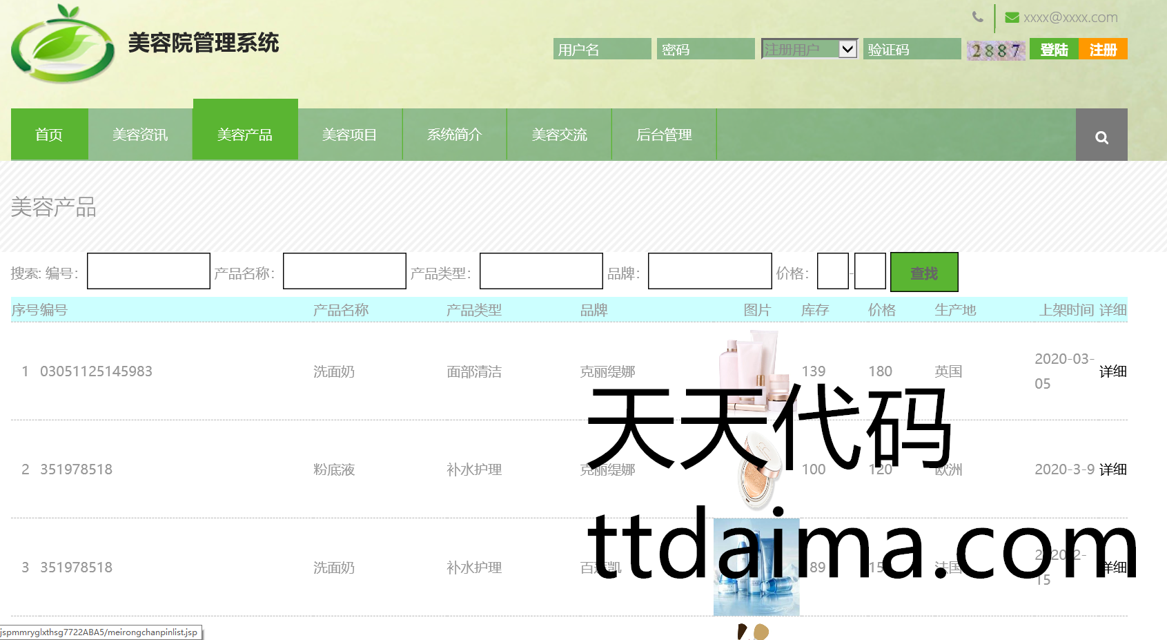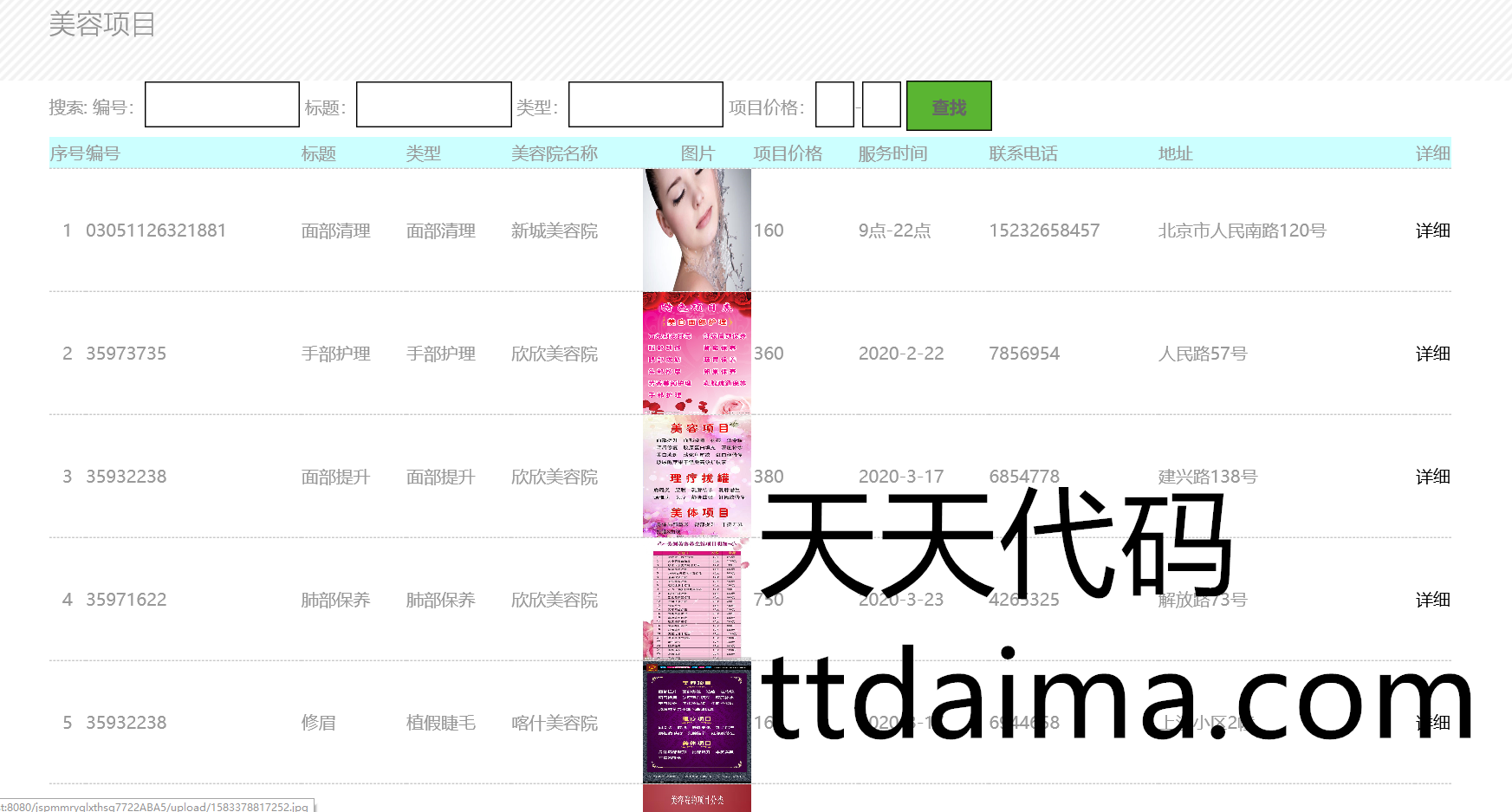 本基于JSP+Servlet开发美容院管理系统由天天代码收集测试整理。
