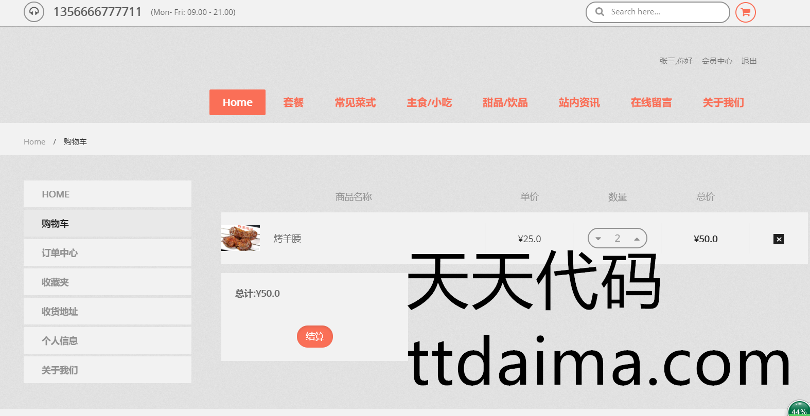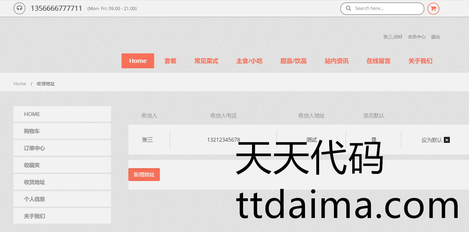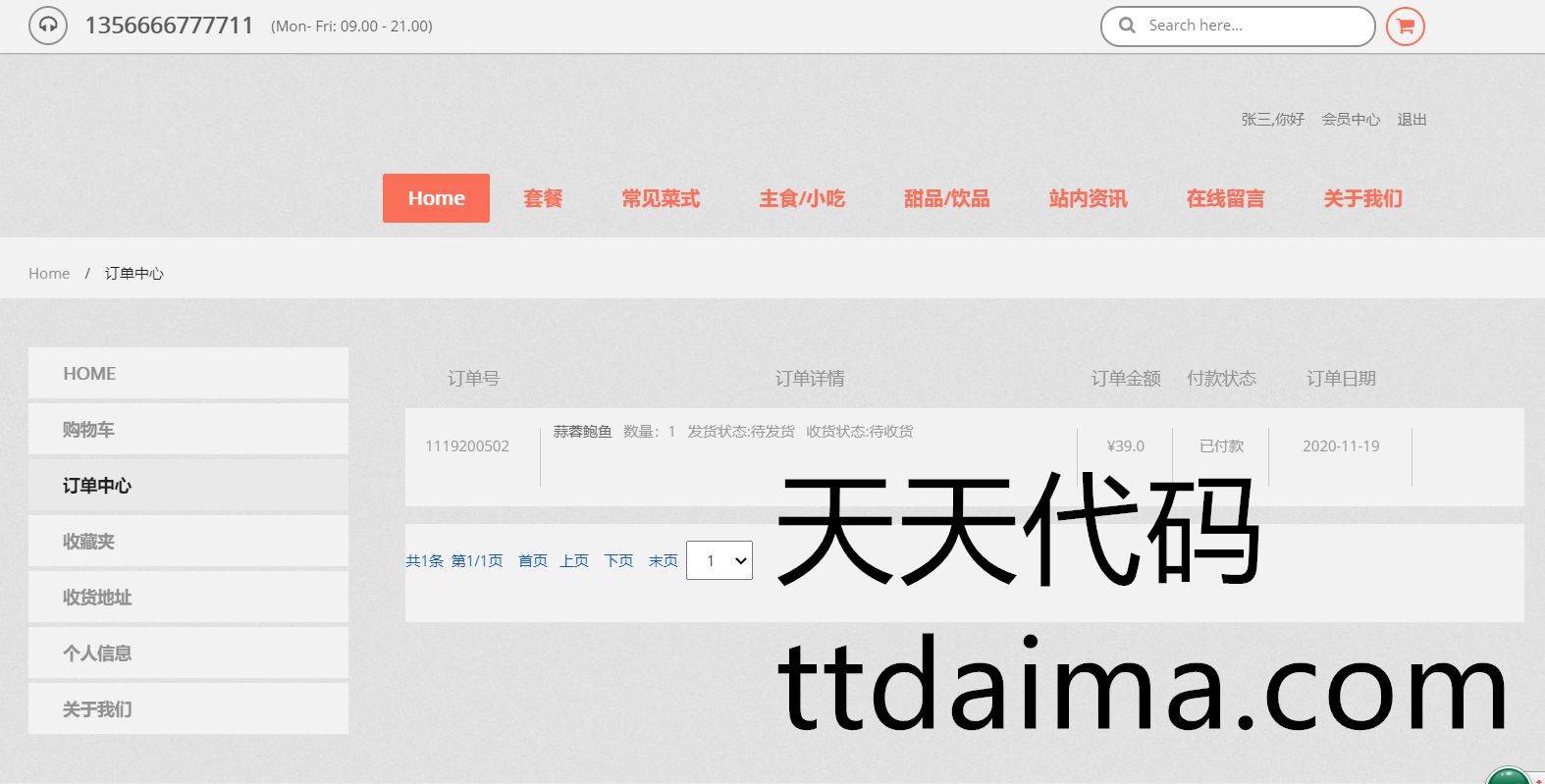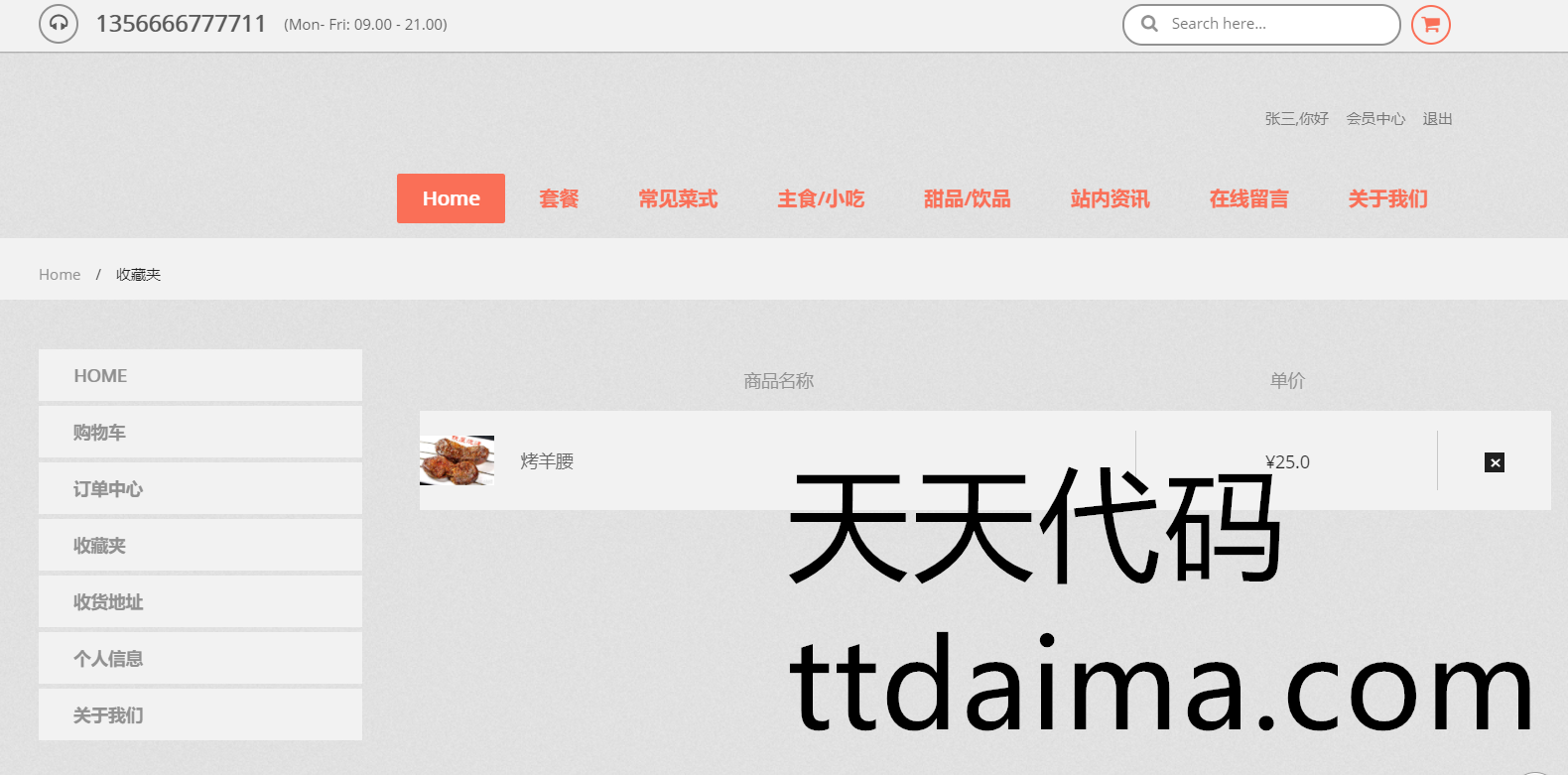 本基于JSP+Servlet开发外卖订餐(点餐)系统由天天代码收集测试整理。