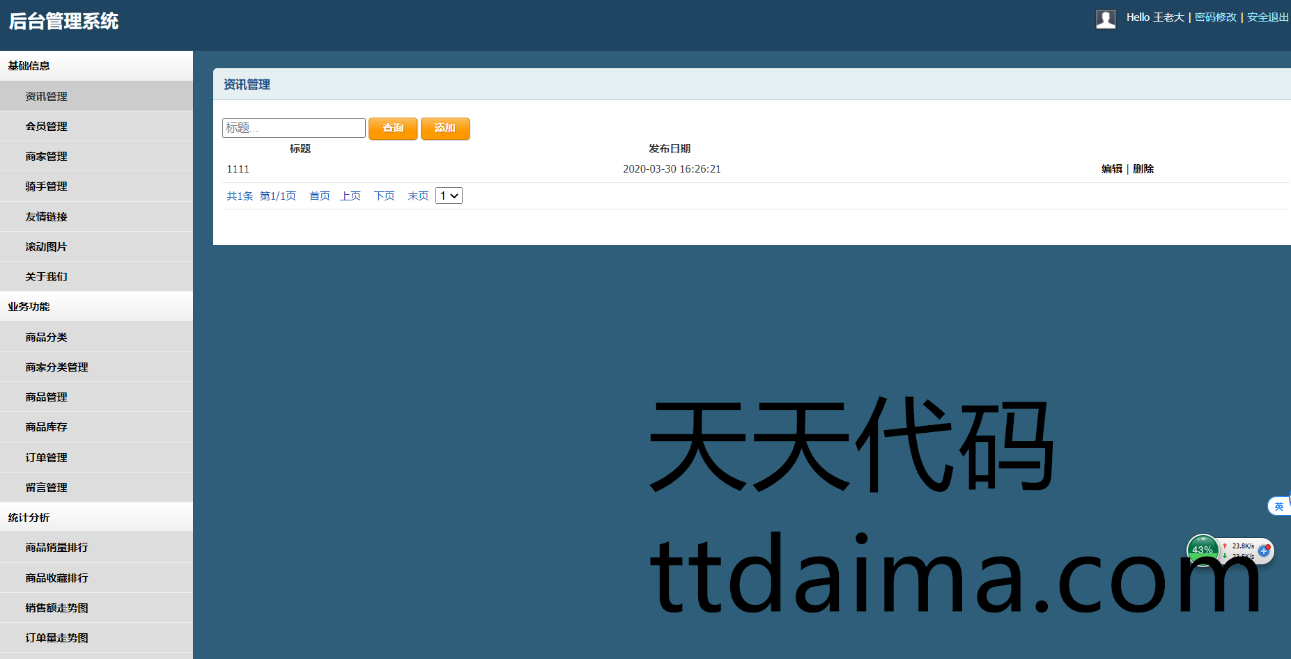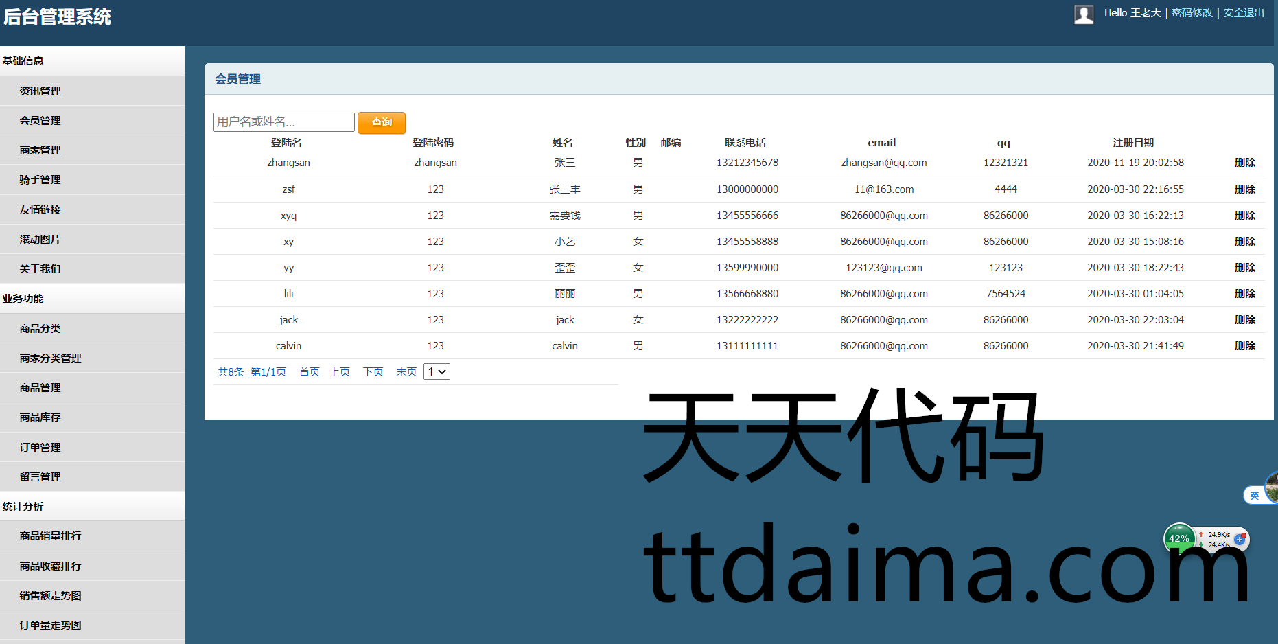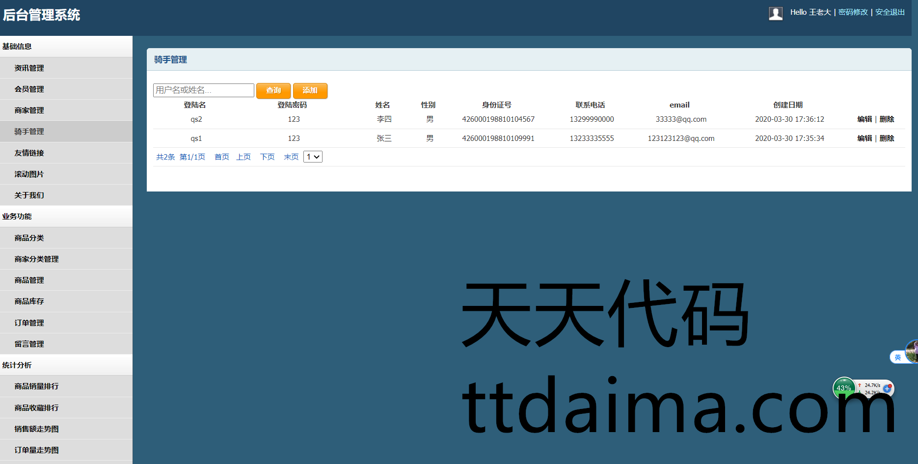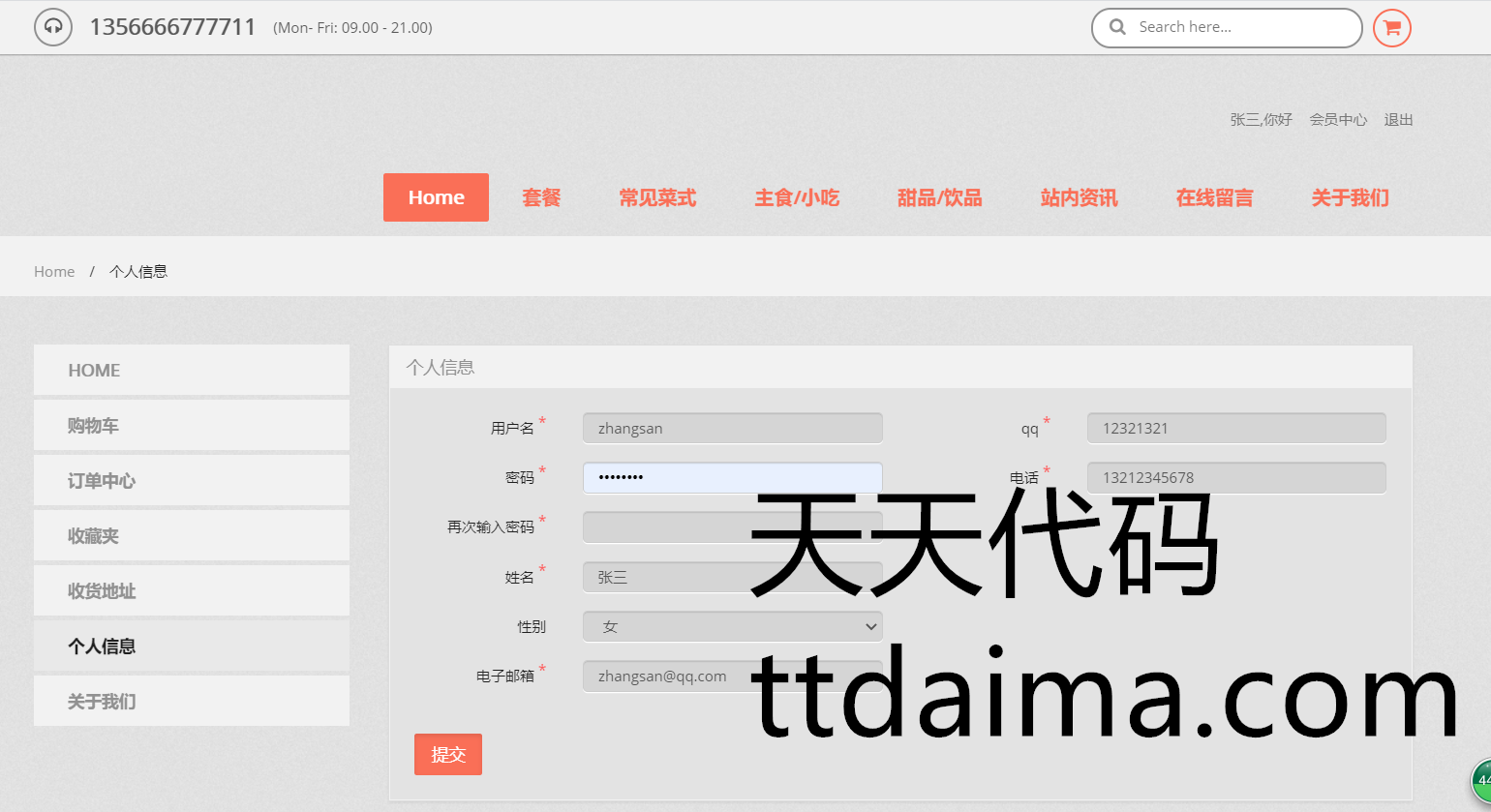本基于JSP+Servlet开发外卖订餐(点餐)系统由天天代码收集测试整理。