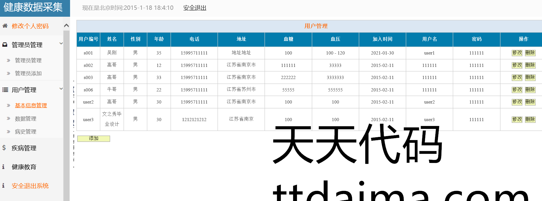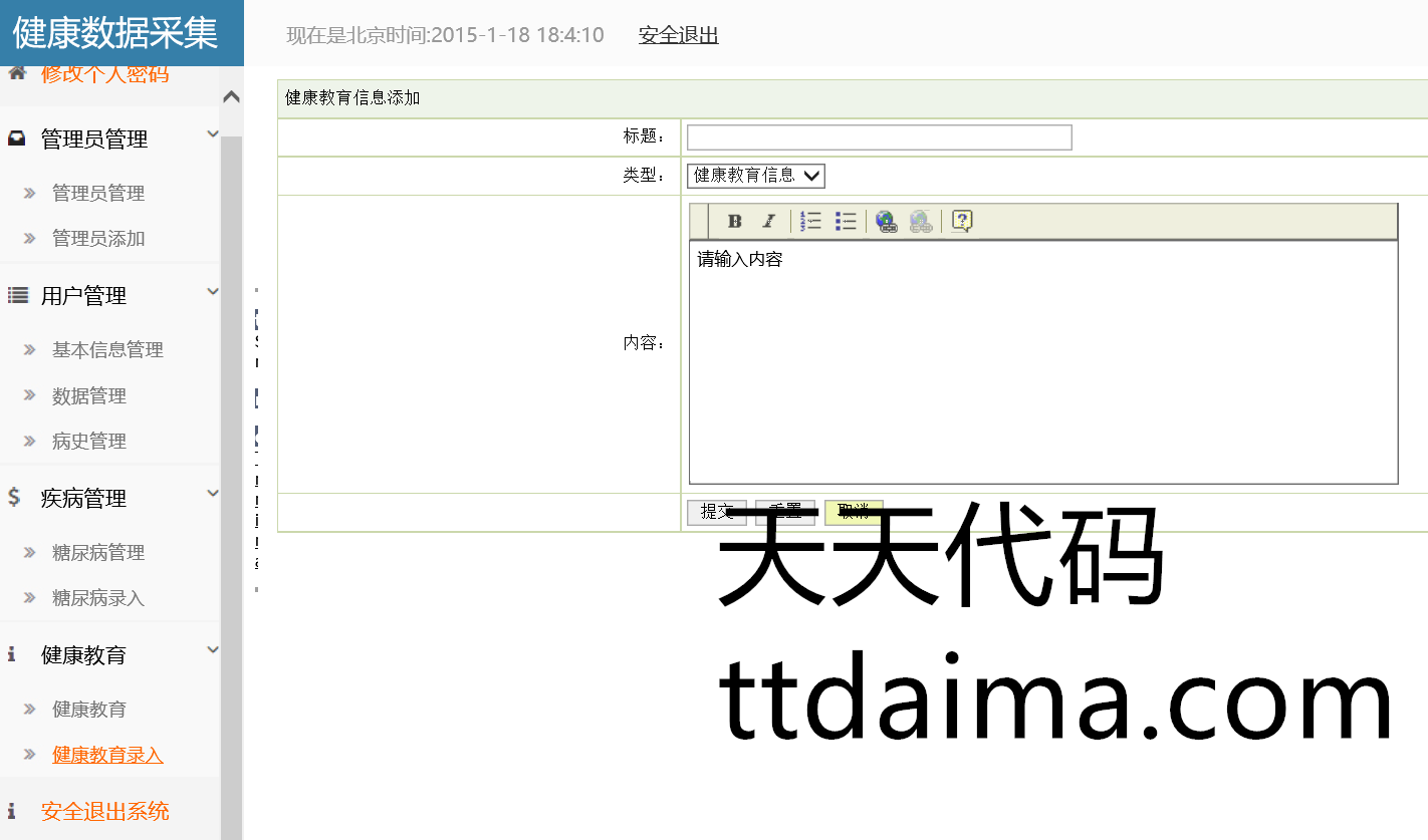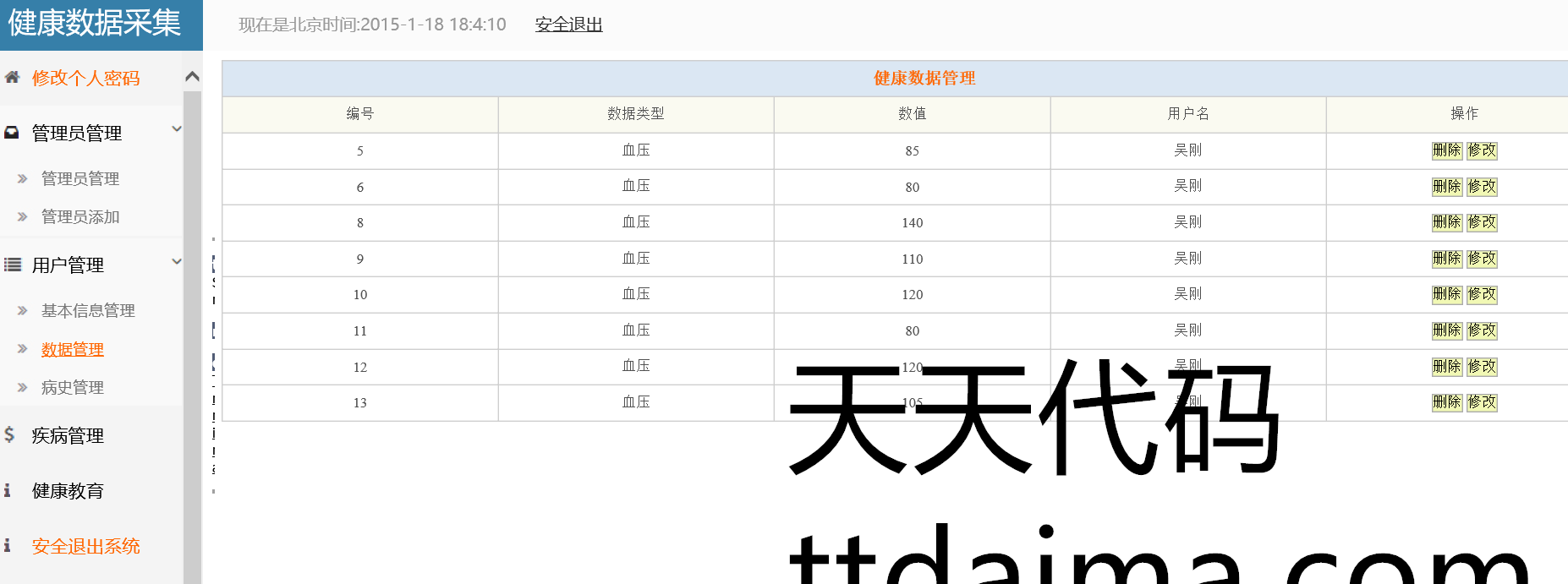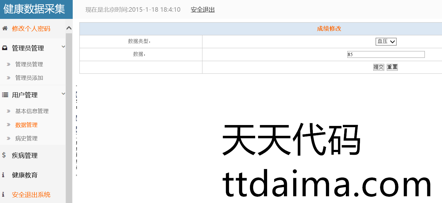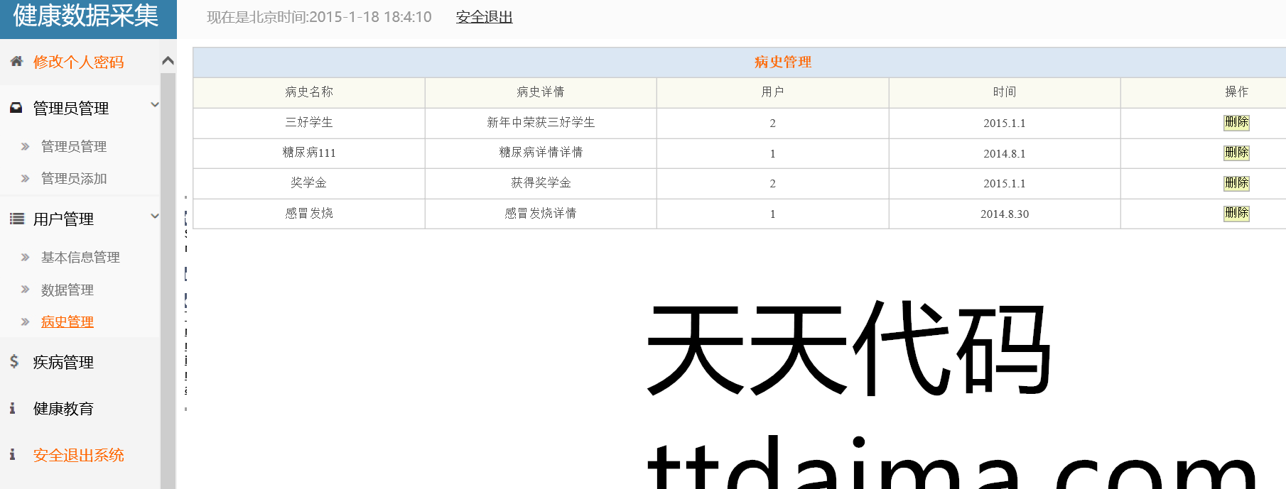 本基于S2SH开发健康档案管理系统由天天代码收集测试整理。