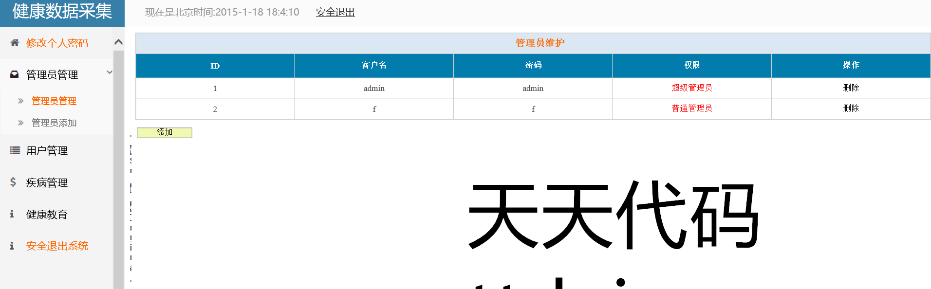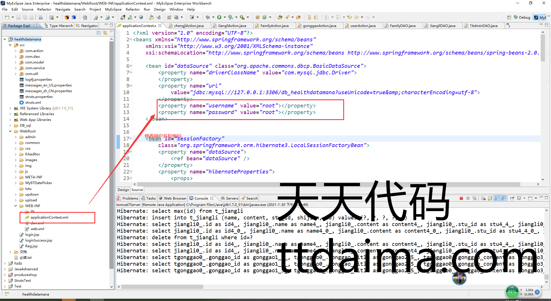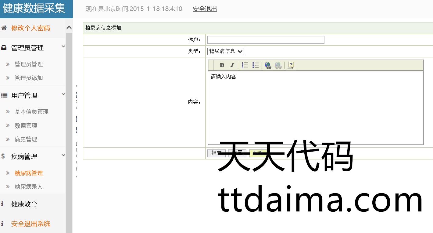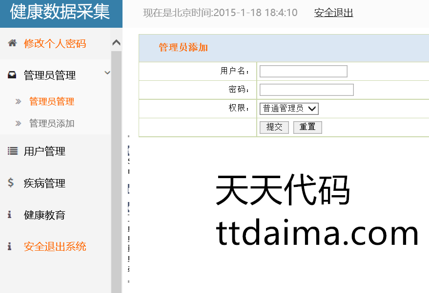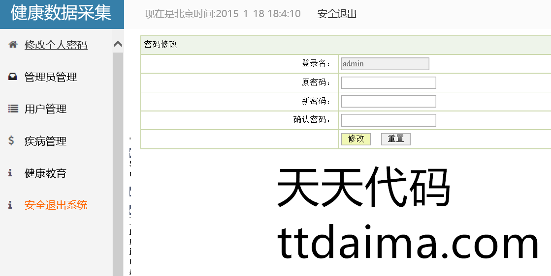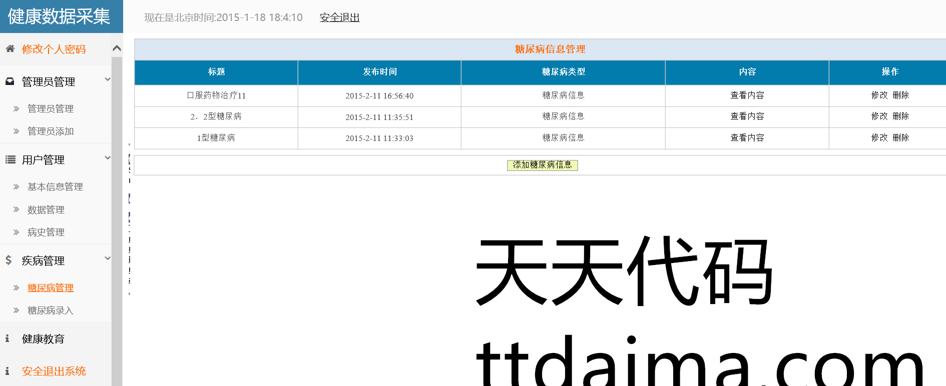 本基于S2SH开发健康档案管理系统由天天代码收集测试整理。