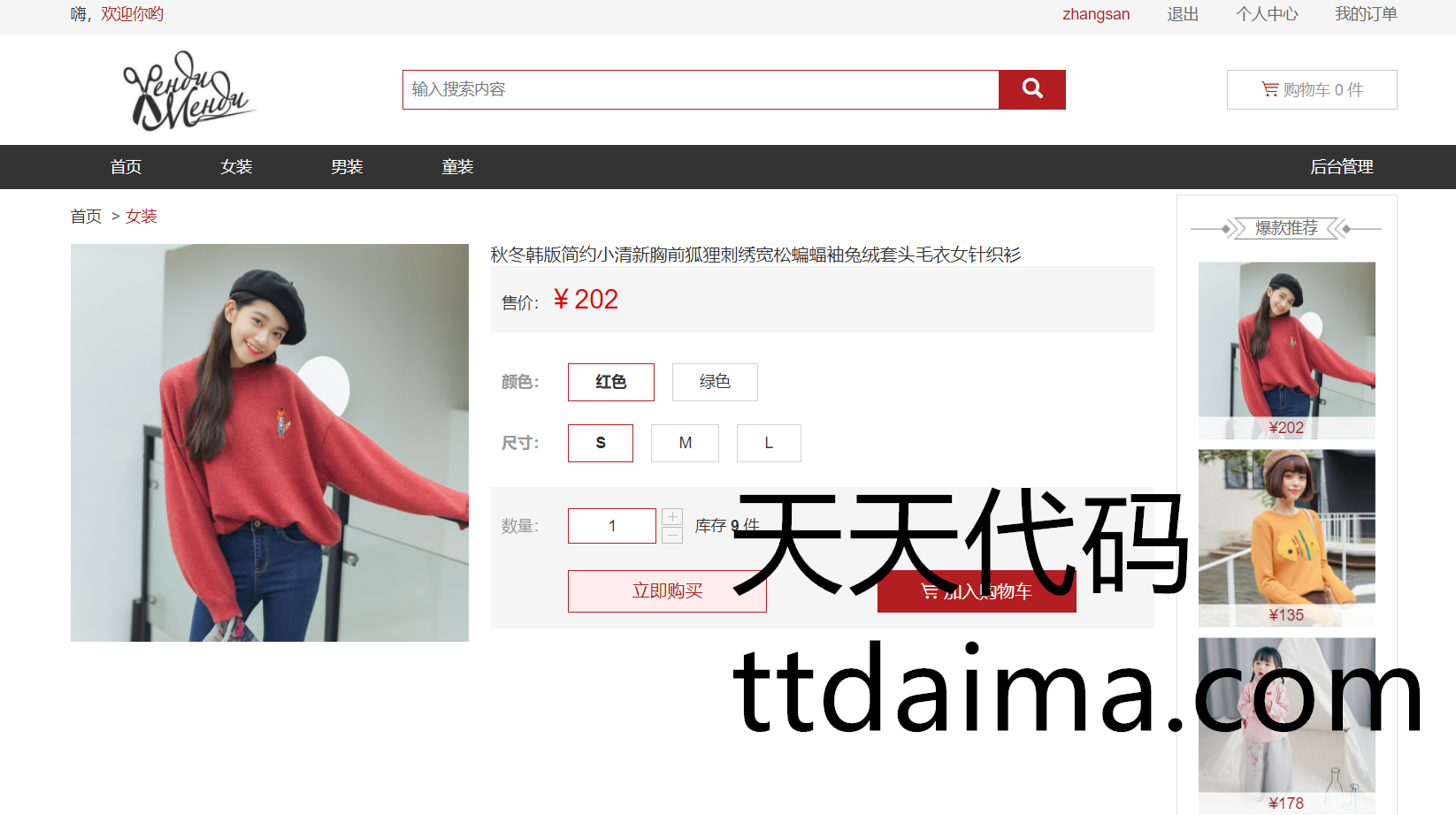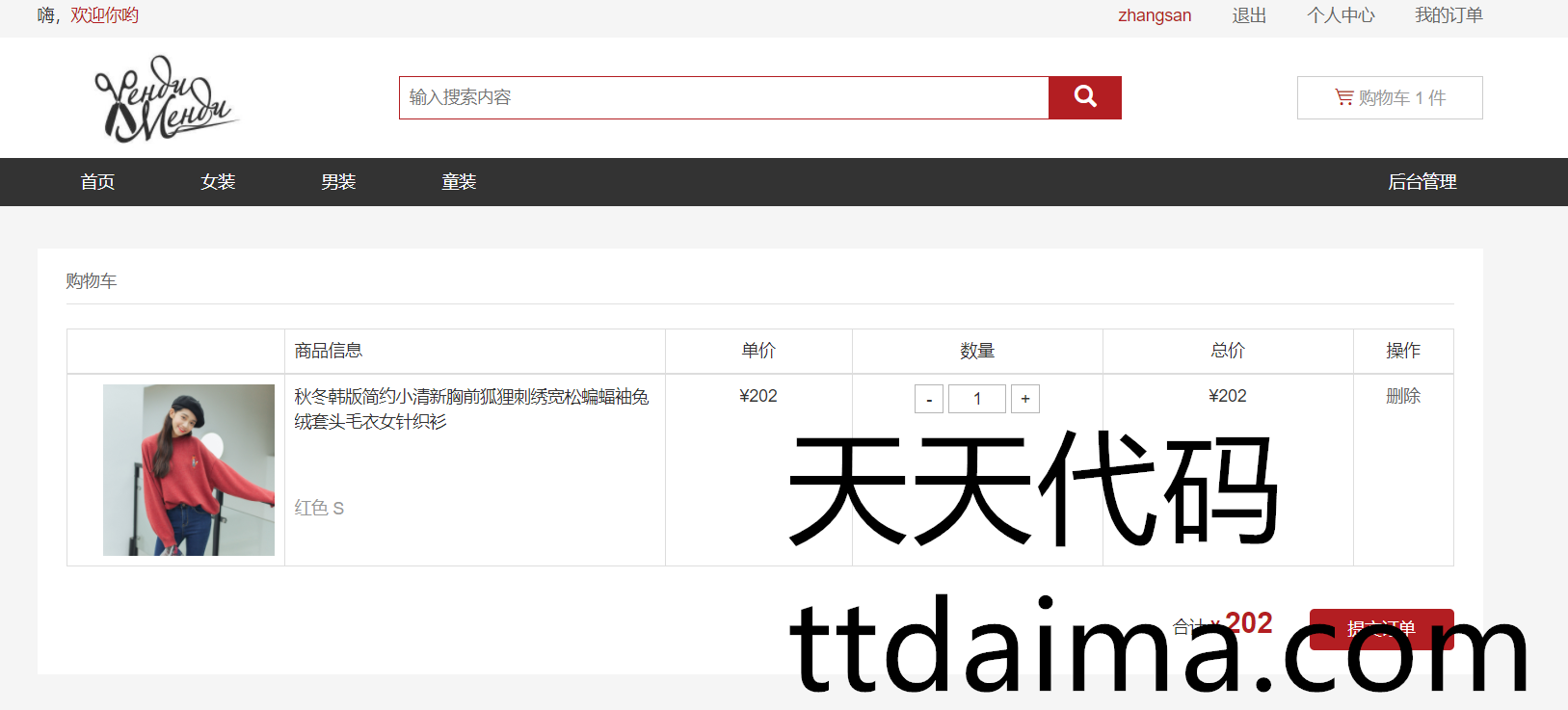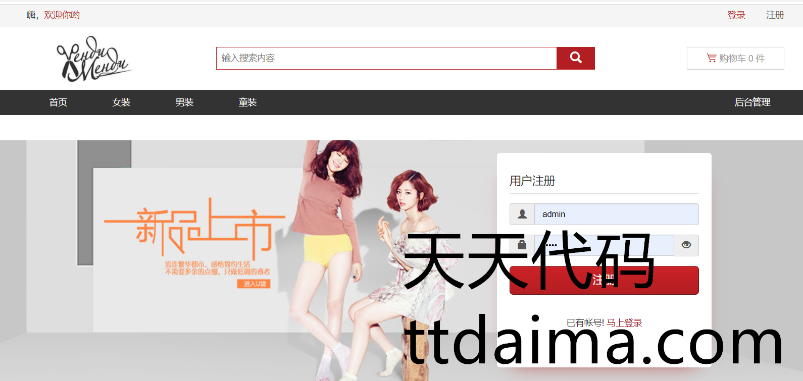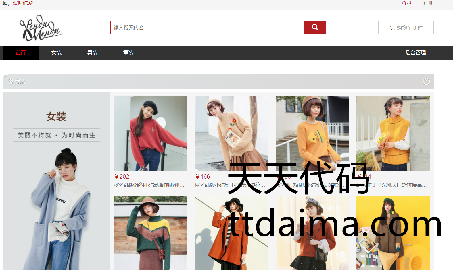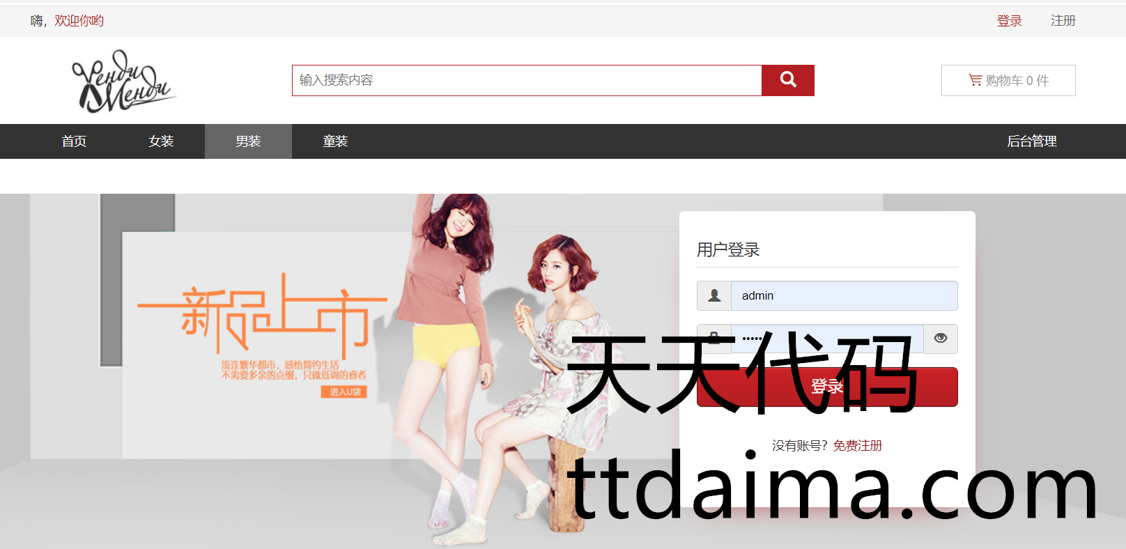 本基于SSM开发男女服装网上购物商城系统由天天代码收集测试整理。