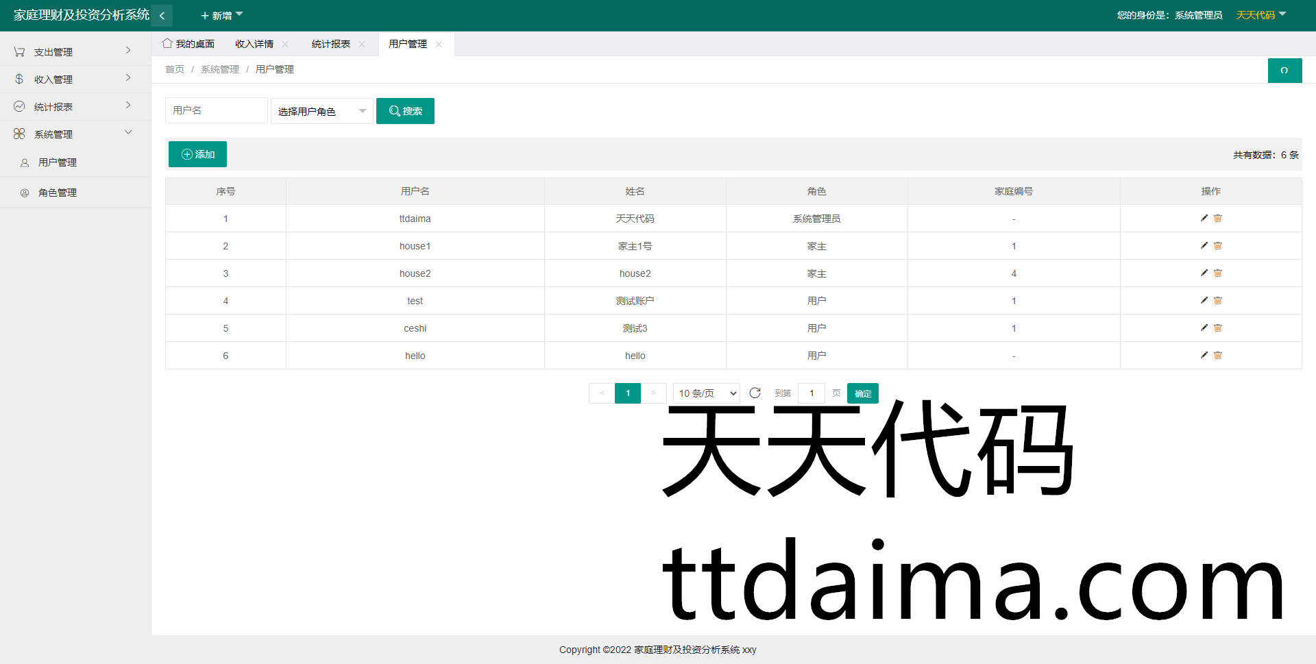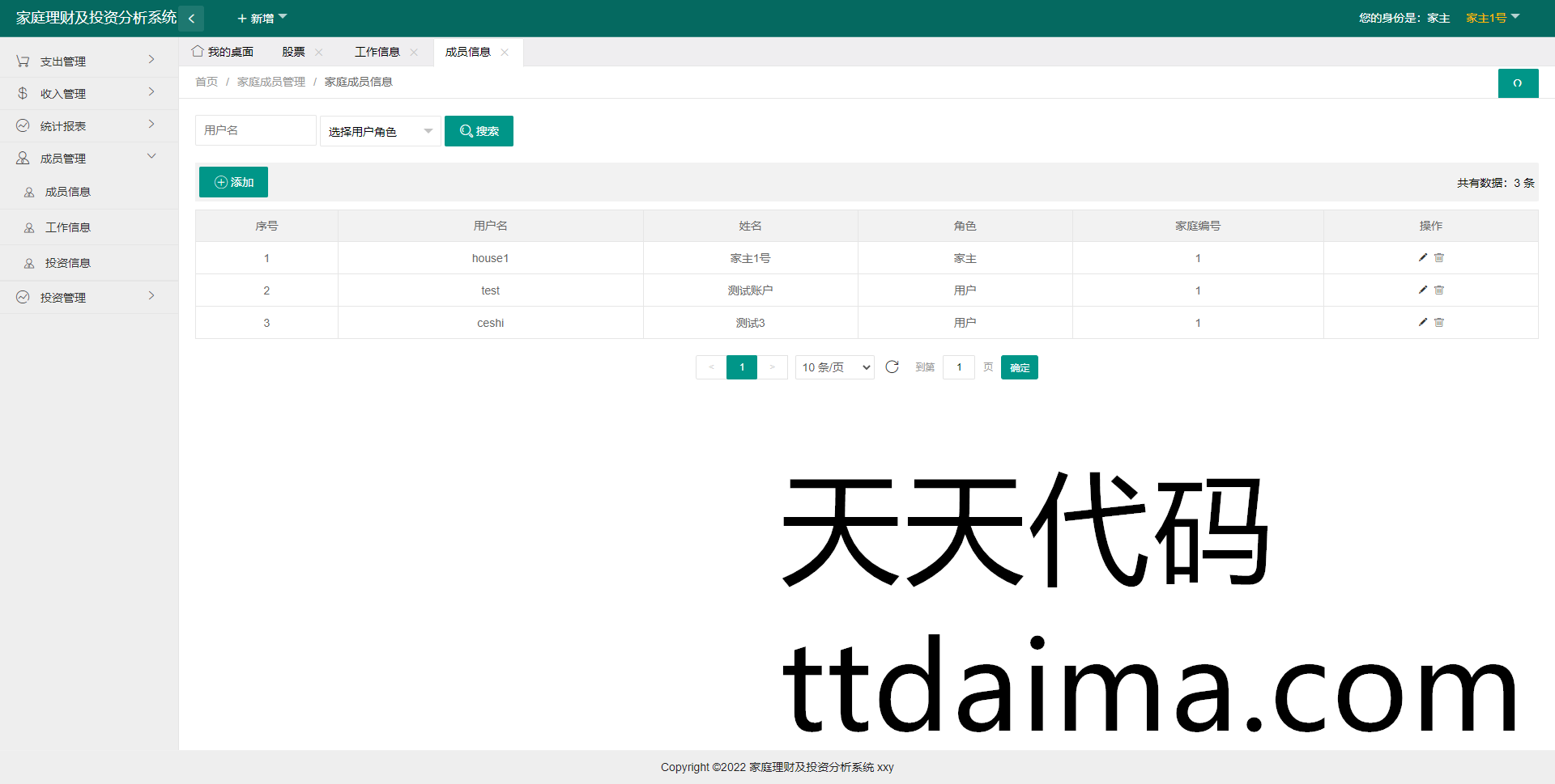 本SpringBoot家庭理财记账及投资分析系统由天天代码收集测试整理。